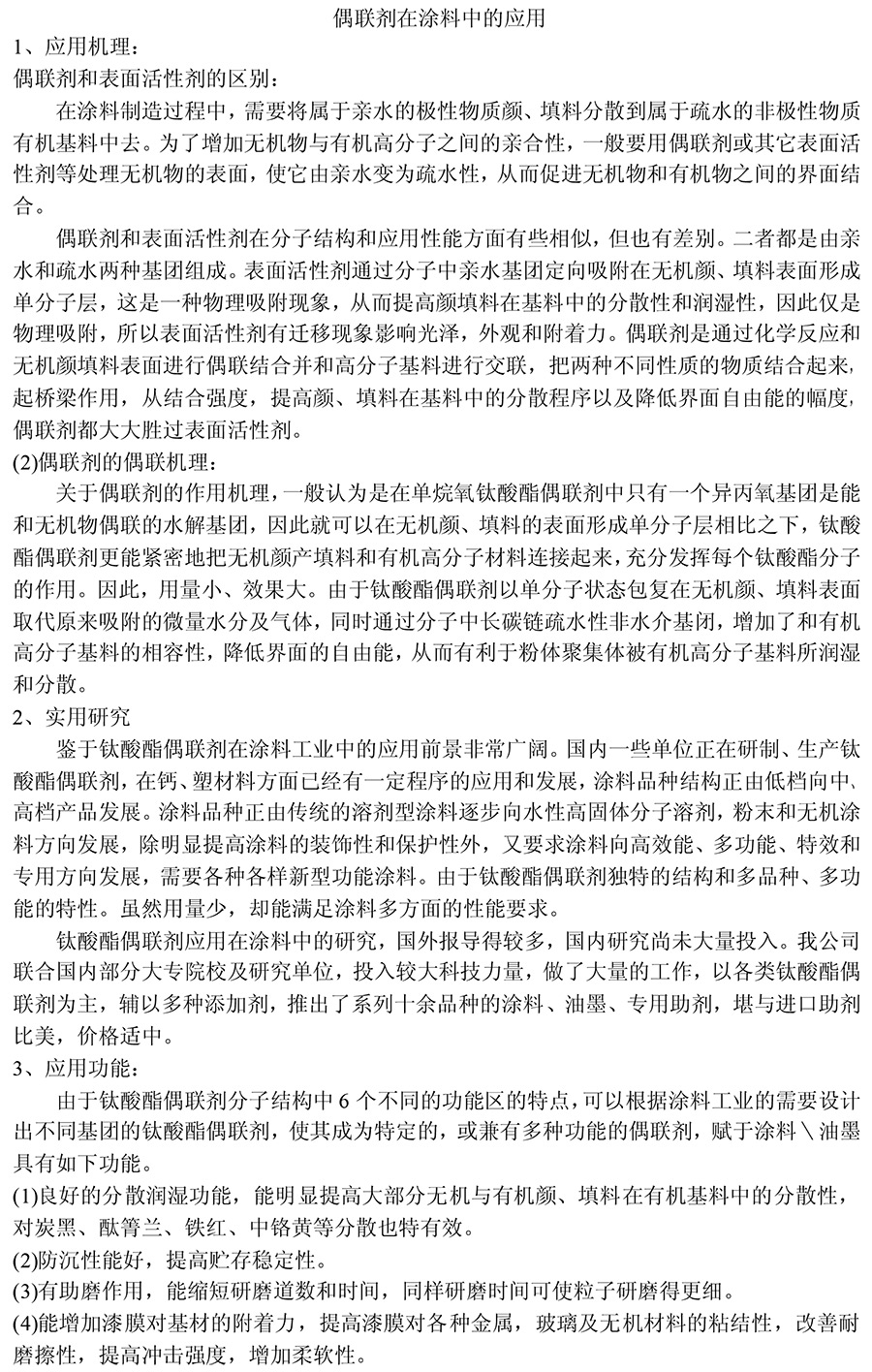 偶联剂在涂料中的应用